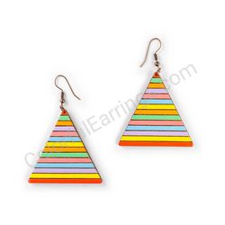Wooden Drop Geometric Earrings - Diamond Stripes 3 (rectangular), Colorful 3