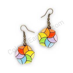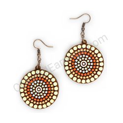 Drop Wooden Circular Floral Earrings - Hippie Blossom 3